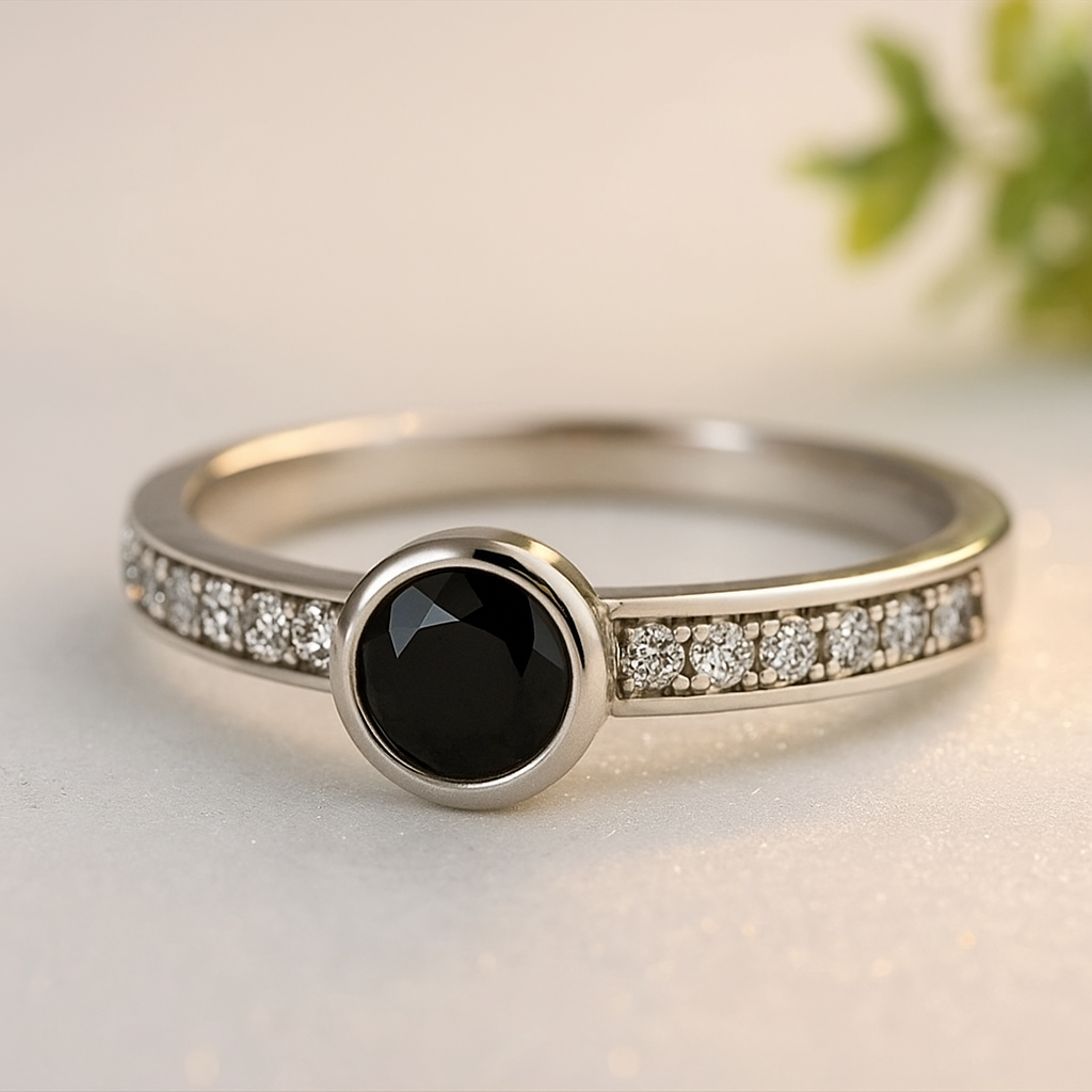 Engagement rings, Fekete gyémánt, Round, Modern, More stone