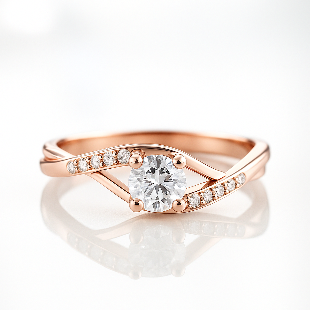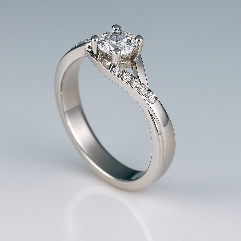 : Breathtaking glamour, graceful lines, romantic curves characteristics of this 14-karat gold diamond engagement ring. These are the qualities that thanks to mesmerising beauty. Line of gently undulating like the sea, or like the plants around vines gently intersect with each other and a hug around the four claw mount. This game is a twist worthy of 0,25 ct-os, 4 mm brilliant cut diamond glow, which further intensify work on the side, slot close to the place, which, opposite to the direction of running, shining a total of 10 packs, each with 1.1 mm diameter small diamonds. Total 0,30 ct weight natural diamond in the ring. Recommended for those ladies who want queen to feel this dazzling jewelry to wear with.