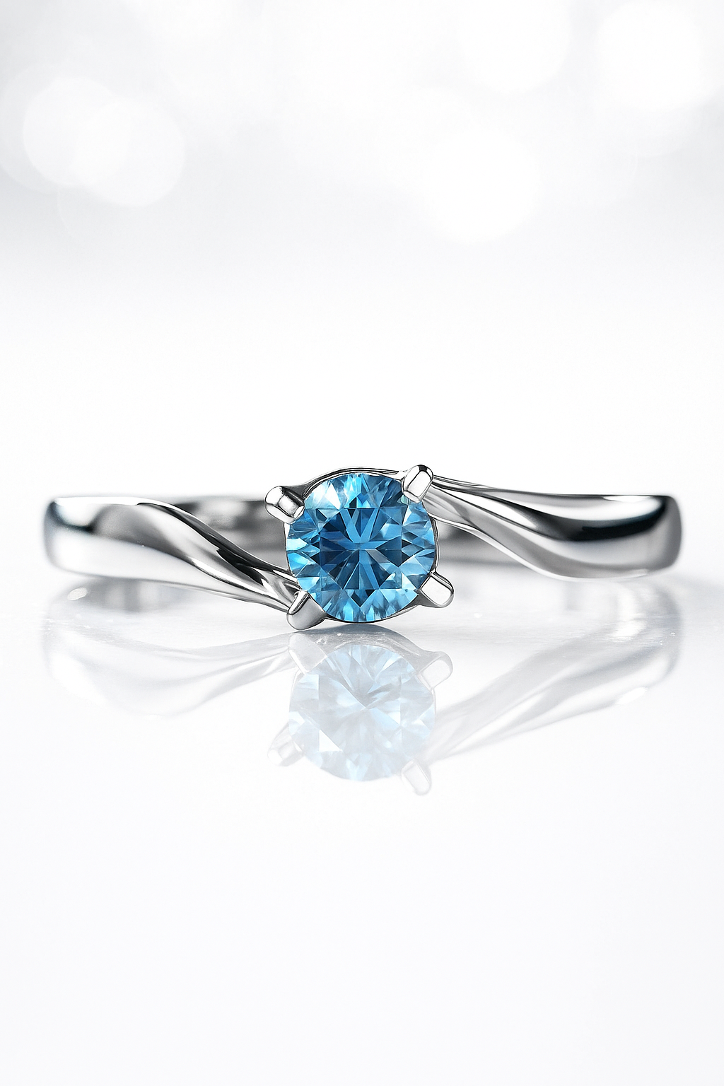 Ez a 14 karátos arany gyémánt eljegyzési gyűrű egyszerre visszafogottan elegáns és légiesen könnyed. Báját játékosan tekergő vonalainak köszönheti. A gyűrűsín az egyik oldalról felül, a másik oldalról alul elkeskenyedve, finom ívvel kapcsolódik a négykarmos foglalathoz. Ez a kialakítás rengeteg fényt enged a drágakőhöz, így kihangsúlyozza a briliáns csiszolású, kék színű, VS1 tisztaságú, 0,10 ct-os gyémánt tündöklését. Azoknak ajánljuk, akik olyan ékszert keresnek, amiben van egy kis csavar, amitől szemrevalóan elbűvölő, mégsem hivalkodó. Mindennapos viseletre tökéletes, de elegánsabb környezetben is megállja a helyét ez az álomszép gyémánt eljegyzési gyűrű.