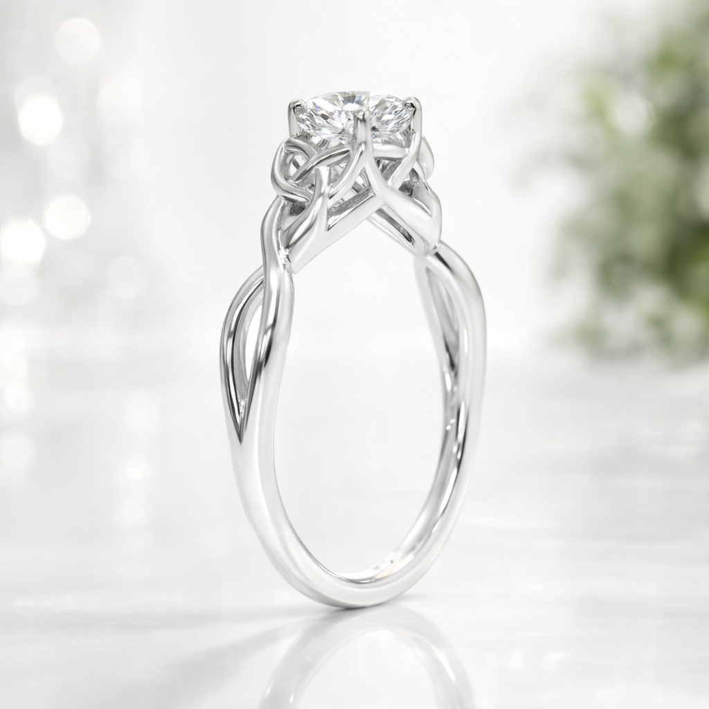Muriel gyémánt gyűrű: Különleges kelta díszítésű, 14 karátos aranyból készült gyémánt eljegyzési gyűrű.